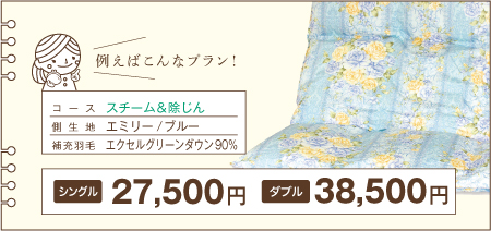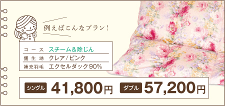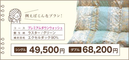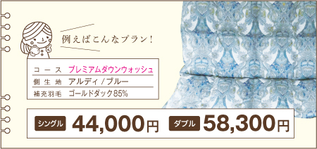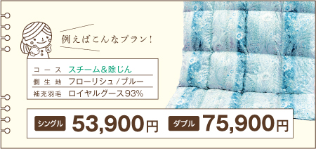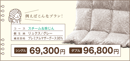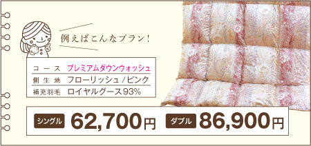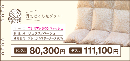 ※下記の価格は「足し羽毛有」を【シングル200g】【ダブル300g】で補充した場合の価格です。 ※価格はすべて税込表示です。